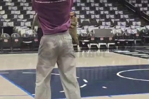 杨瀚森赛前护框练习,今天看来要化身篮下擎天柱!