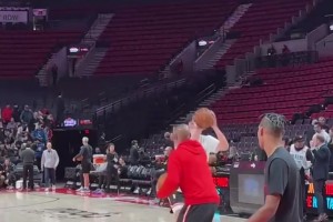 杨瀚森赛前有干扰三分练习,命中率还需提升呀