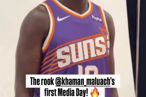 杨瀚森的好哥们!马卢阿奇身穿太阳球衣拍摄定妆照,笑容满面