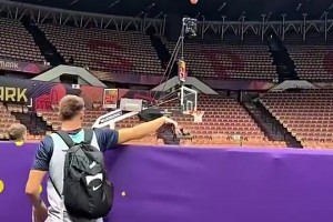 逆天球感东契奇此前从观众席扔进超远三分!队友看傻认输了