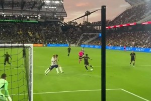 球门近距离视角,感受孙兴慜射门的力量和技术