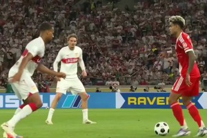 刚扳一球就少一人,赫泽肘击费尔明2黄变1红,主教练不满判罚抗议