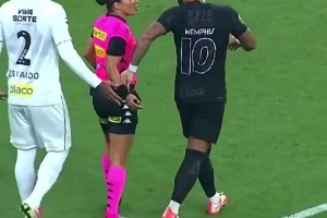 真不避讳!德佩直接上手搂着女裁判,手被甩开后还臭脸了