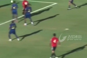 明特单刀机会被多古破坏,裁判向多古出示黄牌