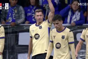 巴萨反超比分!莱万回头望月顶入死角!德容送精准传中助攻!