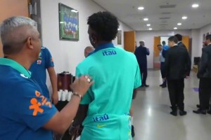 维尼修斯扭扭捏捏地与教练打招呼,你小子怎么看着有点搞笑