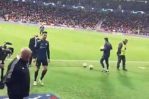 当年C罗避免踩到马竞队徽,球迷反手送一个中指