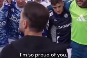 莱奥罚点时,阿莱格里背向球场踱步,球罚进后也很淡定