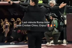 全神贯注!意甲官推晒国米大战罗马最后时刻场边的齐沃