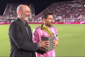 28场29球16助!梅西赛前领取常规赛金靴奖杯!