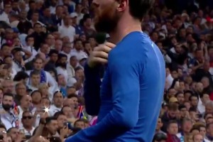 巴萨大巴离开伯纳乌球场时,皇马球迷比中指+唱歌嘲讽