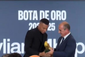 首次获奖!姆巴佩领取24-25赛季欧洲金靴奖