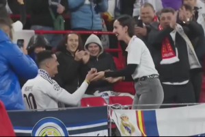 一位皇马球迷在安菲尔德球场向女友求婚,女友答应了