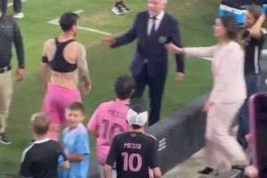 原来是给了妈妈!梅西赛后没有交换球衣,而是给了现场观赛的父母