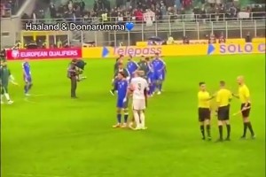 悲喜两重天!哈兰德赛后拥抱安慰多纳鲁马,之后才加入挪威庆祝!