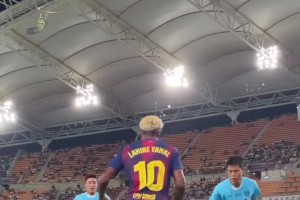这个角度有点幻视小罗!现场直拍:角球线附近看亚马尔的突破!