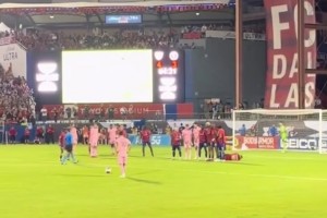 100%是值得的!安保人员始终没忍住,但梅西任意球直挂死角!