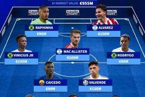 体育资讯10月16日讯德转盘点了南美足联球员的最高身价阵容,整套阵容总价值高达9.55亿欧元。其中皇马边锋维尼修斯以1.5亿欧元成为身价最高的球员,巴尔韦德以1.3亿欧元紧随其后。南美足联最贵阵容:门将