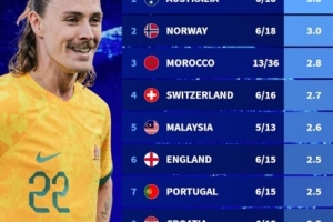体育资讯10月9日讯德转统计2025年至今参加5场以上比赛的各国国家队战绩,澳大利亚、挪威六战全胜高居第一。2025年表现最佳国家队(参赛5场以上)排名-国家-场次/积分-场均积分1-澳大利亚-6/18
