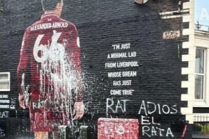 体育资讯11月4日讯据TheAthleticFootball报道称,阿诺德在利物浦当地的壁画已经被清洗干净。本周中的欧冠皇马将客战利物浦,阿诺德重返安菲尔德。赛前,阿诺德在利物浦当地的一处壁画遭到了球迷