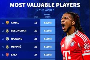 体育资讯10月16日讯2025/26赛季的首次德转身价更新接近尾声,明天德转将进行英超球员的身价更新。在西甲、意甲、法甲、德甲身价更新后,目前世界前20身价的球员如下。世界身价TOP20(英超身价明天更