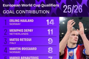 体育资讯10月15日讯Squawka统计了本届欧洲世预赛球员参与进球(助攻+进球)的数量,并列出榜单,哈兰德参与14球居首,德佩参与11球次席。本届欧洲世预赛参与进球榜:哈兰德(挪威)——14德佩(荷兰