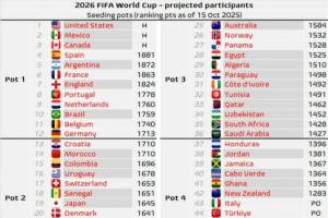 体育资讯10月15日讯10月国际比赛日结束,距离世界杯12月抽签只差2个月,各队只剩11月国际比赛日能够获得积分。专业数据机构footballmeetdata预测了世界杯最新的分档,以及晋级队伍。世界杯