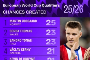 体育资讯10月15日讯据Squawka统计,厄德高是本届欧洲世预赛创造机会最多的球员。欧洲世预赛创造机会排名厄德高(挪威)——25索尔巴-托马斯(威尔士)——23托纳利(意大利)——23瓦茨拉夫-切尔尼