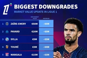 体育资讯10月12日讯德国转会市场更新了法甲球员的身价,并列出身价下跌排名,扎伊尔-埃梅里、帕瓦尔、西拉-500万欧居首。法甲球员身价下跌榜:扎伊尔-埃梅里(巴黎,5000万欧):-500万欧帕瓦尔(马