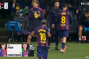 体育资讯10月18日讯北京时间22:15,西甲第9轮,巴萨主场迎战赫罗纳。比赛第63分钟,亚马尔、佩德里被巴德吉和克里斯滕森换下。