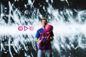 巴萨球衣上的第七个Spotify标志更新将迎来艾德·希兰。这位英国歌手成为首位登上巴塞罗那足球俱乐部球衣的流行音乐人,其最新专辑《Play》的封面设计将占据球衣最醒目的位置。该标志将于10月19日女足