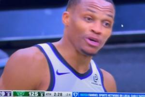 GIF-小萨五犯,威少向他示意:我去防字母哥威少随后对字母哥犯规,自己也五犯了GIF-威少唇语解读:我不想你被罚下(Idon’twantyoufouledout)
