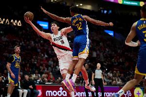体育资讯10月25日讯NBA常规赛,开拓者主场以139-119大胜勇士,迎来赛季首胜。末节最后阶段,杨瀚森重新登场之后接到韦斯利传球扣篮得手,拿下NBA生涯首个运动战得分。随后,杨瀚森还送了两次盖帽。全