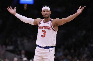 体育资讯10月25日讯尼克斯105-95战胜凯尔特人。赛后,尼克斯中锋唐斯接受媒体采访。谈及队友哈特19分钟抢下14个篮板,唐斯表示自己并不惊讶:“这就是他的特点,他总能用自己的能量影响比赛走势。”此役