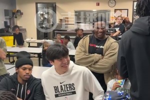 完全融入啦~杨瀚森参加开拓者社区活动,笑得很开心啊