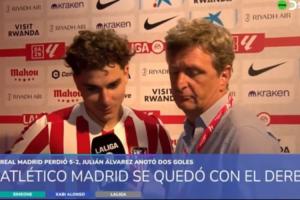 体育资讯09月28日讯马德里德比,马竞5-2大胜皇马。阿尔瓦雷斯梅开二度。赛后阿尔瓦雷斯接受DSport采访。记者:你现在选择回看哪一球,点球还是任意球?阿尔瓦雷斯:我觉得那个任意球我踢得更好,点球打得